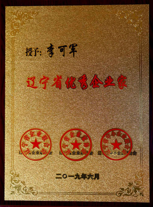 公司董事長李可軍榮獲“遼寧省優(yōu)秀企業(yè)家”榮譽稱號