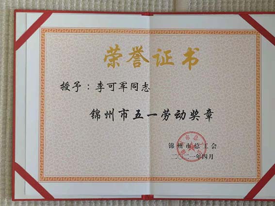 公司董事長李可軍榮獲“錦州市五一勞動(dòng)獎(jiǎng)?wù)隆睒s譽(yù)稱號