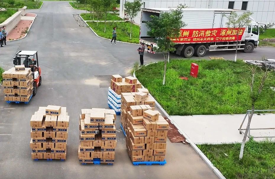 8月5日到7日,錦州九泰藥業(yè)及集團(tuán)下屬錦州本天藥業(yè)、遼寧控感消毒科技公司三家企業(yè)上下聯(lián)動,全力組織員工從三家企業(yè)庫房緊急調(diào)配包括復(fù)方氯己定撒粉、復(fù)方紫荊皮水楊酸溶液、硫酸慶大霉素碳酸鉍膠囊、蒲地藍(lán)消炎片、對乙酰氨基酚片、氨咖黃敏膠囊、乙醇消毒液、84消毒液、碘伏消毒液及消毒片等價值300多萬元的急需藥品及消毒用品。其中消毒消殺用品因庫存不足,企業(yè)臨時決定增加生產(chǎn)計劃,員工加班加點24小時連續(xù)生產(chǎn),爭分奪秒,將1400余件的救援藥品馳援涿州、五常、舒蘭等地,用于災(zāi)區(qū)救援,保障受災(zāi)群眾人身安全,助力災(zāi)后重建及復(fù)工復(fù)產(chǎn)等工作。